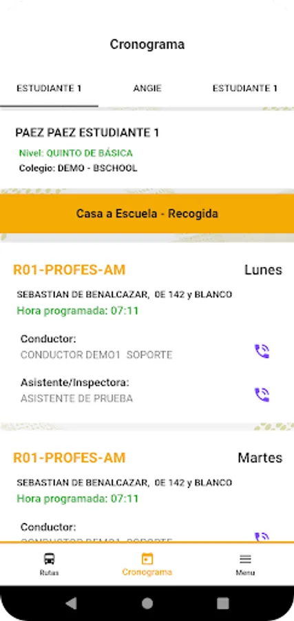 BSCHOOL Parents, allows parents of students and staff of the institutions, who travel on the school transport routes, to see the weekly planning of the routes for each passenger, request changes to the transport service and perform online monitoring of the movement of the route. BSCHOOL sends proximity alerts and notifies parents of the arrival of their children at the institution and at their home.