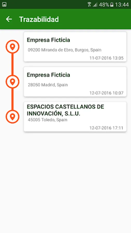 Traceability of products. All users will trace information followed by the products to reach it, with the date information and status at all times. Traceability function is intended to be automated, by reading labels for each member user in the distribution chain once you receive the product, and the date and location via GPS automatically register.