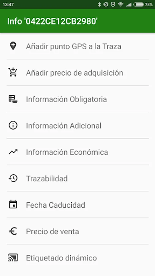 The system configuration will they incorporate many fields of information so that all participants in the chain of production and distribution who wish to provide information: dates, dates of consumption; type of fertilizers used in the case of agricultural products; or ingredients, additives or allergies in the case of manufactured products. In short, all kinds of additional information and / or replacement desired by the supplier / distributor, who can provide an added value to your product. This information may be accessible by the end user from NFC technology.