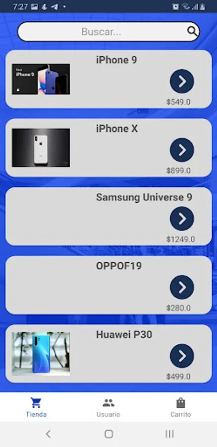 Aplicación desarrollada en AndroidStudio, que simula el funcionamiento de una tienda comercial, con diferentes funcionalidades como carritos de compra, consulta de productos, listado de productos, pagos ficticios y una administración de sesiones de usuario.