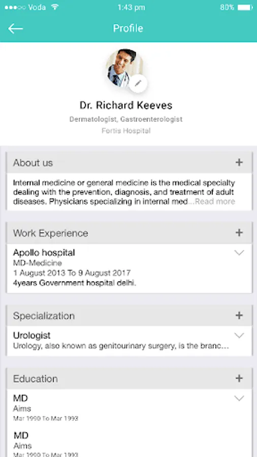 My Profile: Doctoer can update complete profile information and contact information.