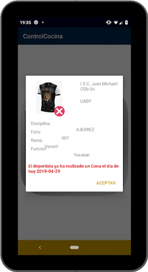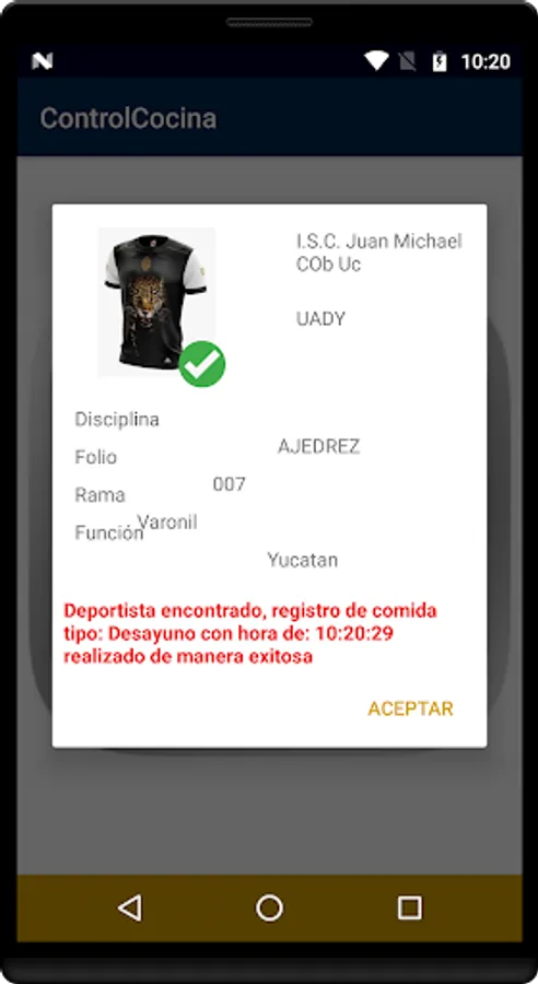The application scans the assigned codes of the athletes for access to the dining room, these accesses are delivered by the university through a QR code.