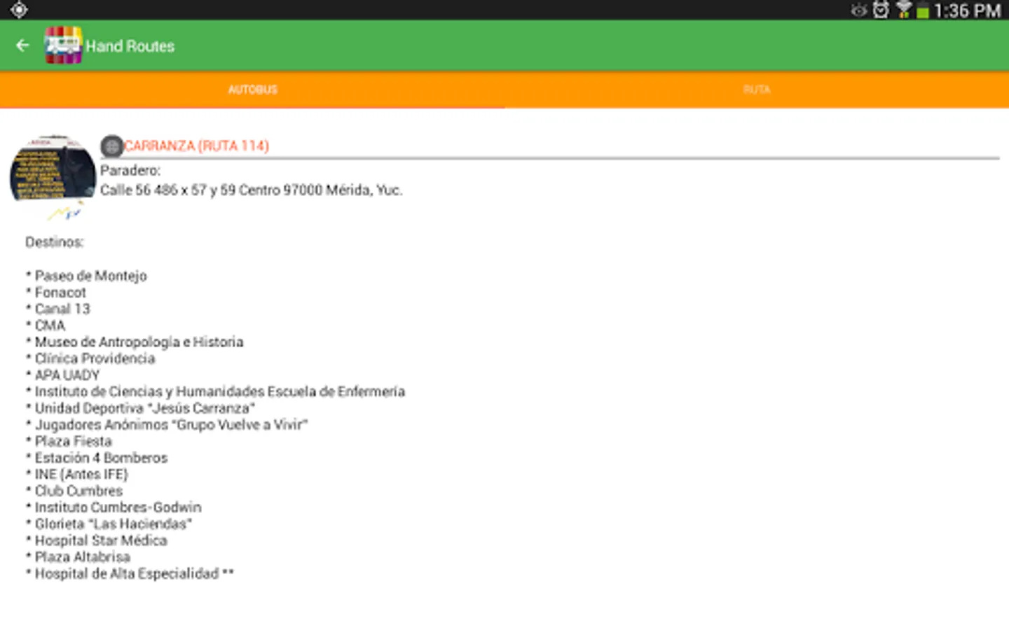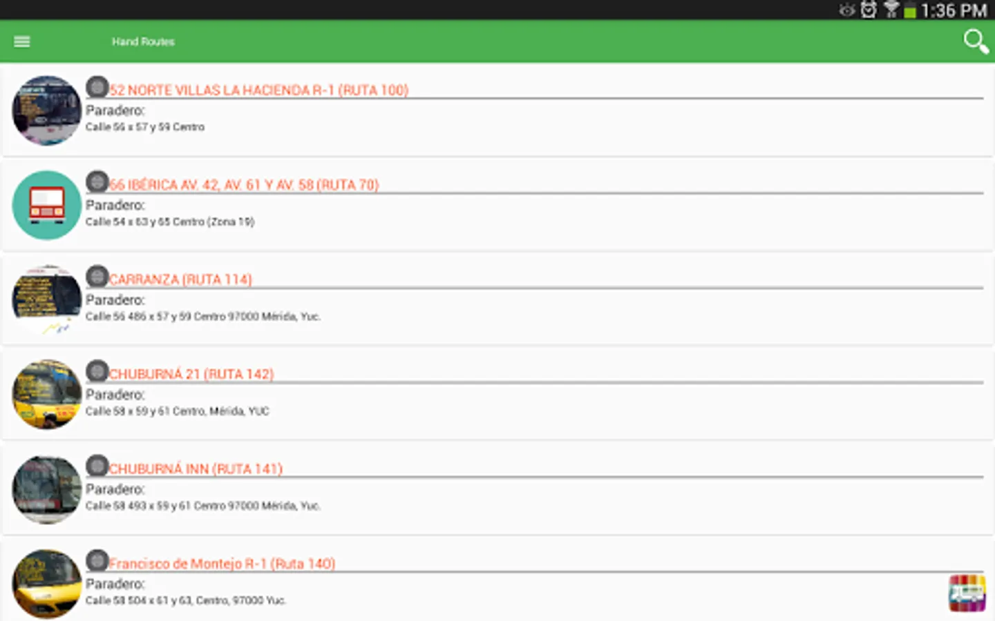 This application allows you to view the public transport routes of the city of Merida Yucatan.