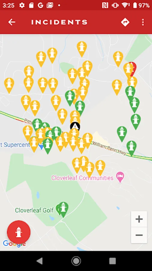 -Hydrant Viewer: If you are at an incident and need to know where the closest hydrant is to the incident just click the hydrant button on the incident map and it will show you where all the hydrant’s are in the set radius right on the map.