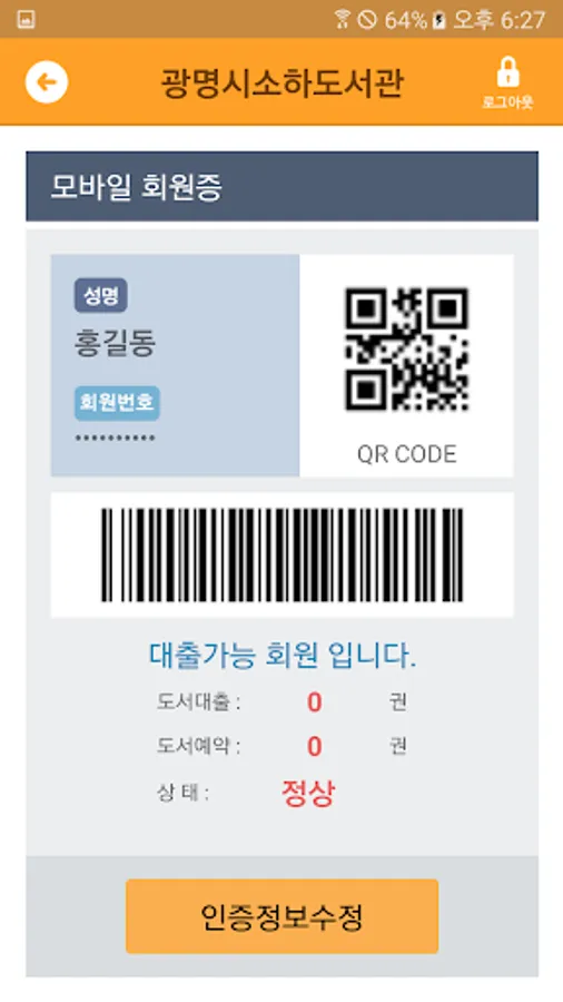 Gwangmyeong-si Library (Soha, Haan) This is an app that can receive bookmarking service using beacon, child care service, billing symbol transmission management service that informs the result of data search by letter.