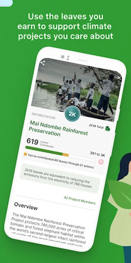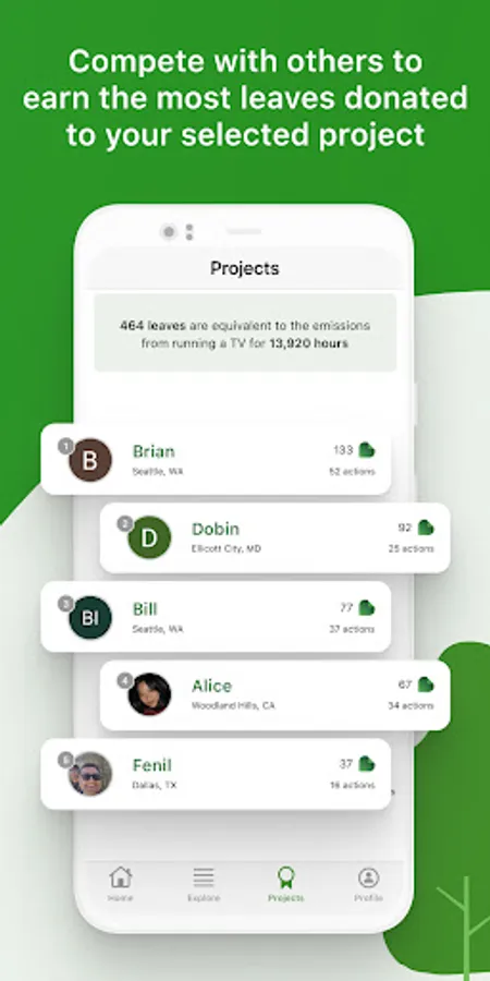 Each action you complete earns “leaves” to collaborate and compete with others in the GetGreen community. When your leaves add up, GetGreen turns those leaves into action by partnering with climate-focused organizations that provide support for certified carbon removal projects around the world and in your community.