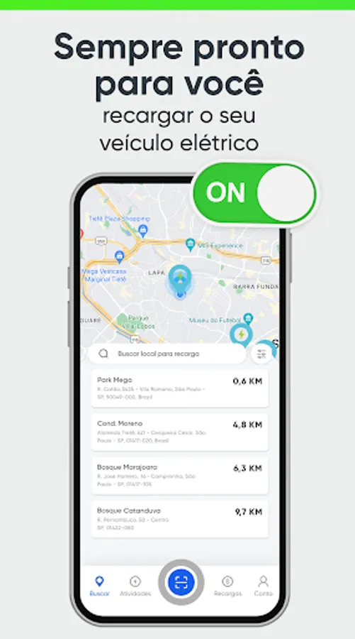 • Find nearby recharge points and see if they are in use or available;