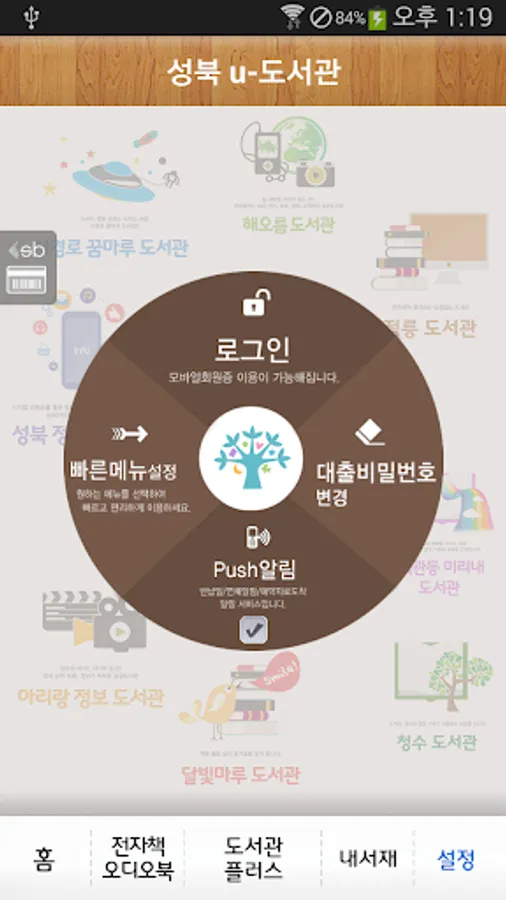 Seongbuk u-Library is Seongbuk Information Library, Arirang Library, Haeoreum Library, Jongam-dong Saenal Library, Seogyeongro Kkummaru Library, Seokgwan-dong Mirinae Library, Moonlight Maru Library, Jeongneung Library, Cheongsu Library, Wolgok Dream Picture Library, Arirang Children's Library, Seongbuk Ieum It is a dedicated application that integrates the library, Jangwi Happy Enjoyment Library, and Seongbuk Gilbit Library into one.
