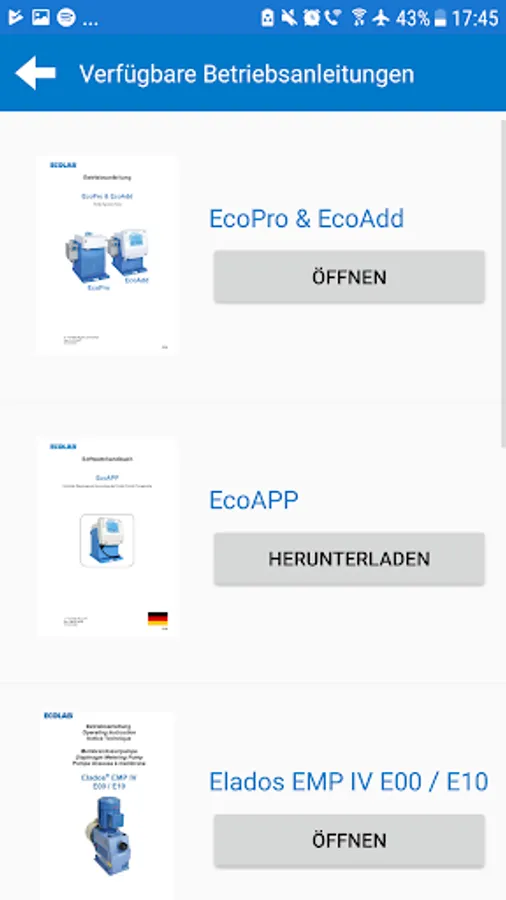 Download of documents such as manuals, catalogs and flyers of the Ecolab Engineering product range.
