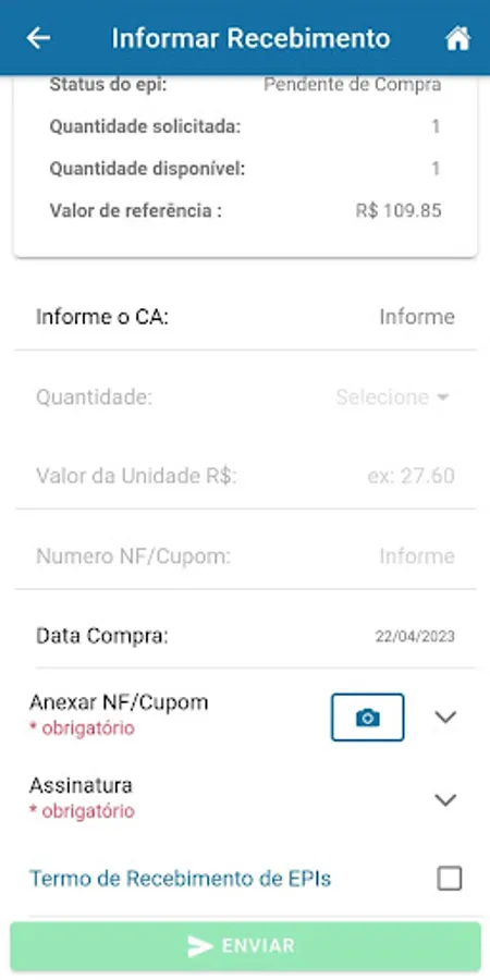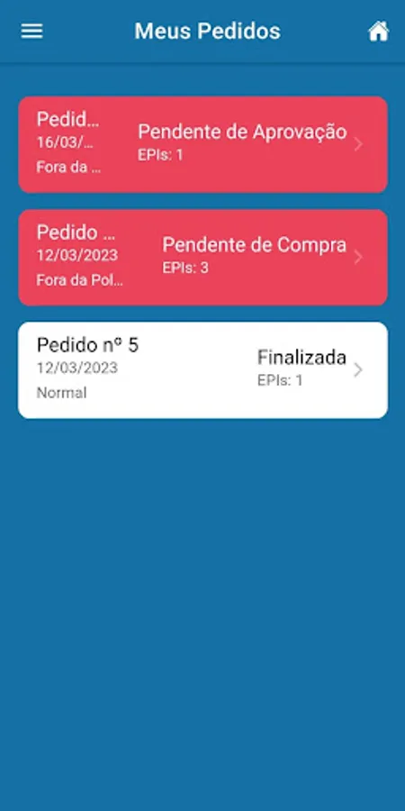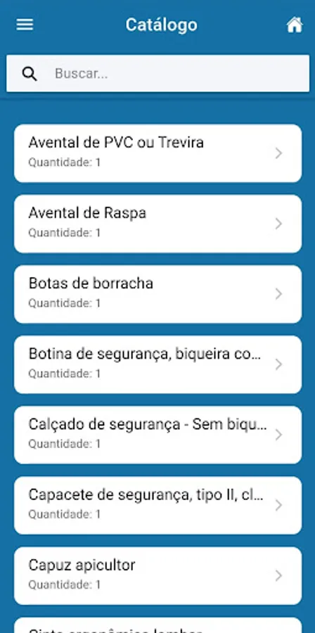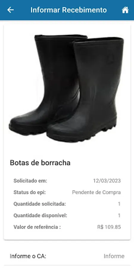 Application developed for the use of employees who use PPE in the performance of their duties, facilitating the process of requesting, acquiring and controlling the validity of personal protective equipment.