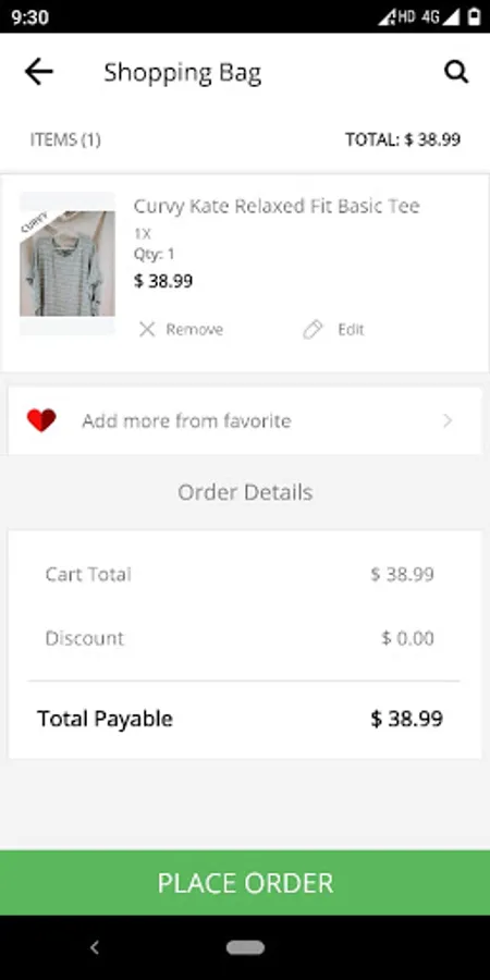 The app menu is very easy to use and you can easily favorite items & add to the cart for fast and easy checkout.
