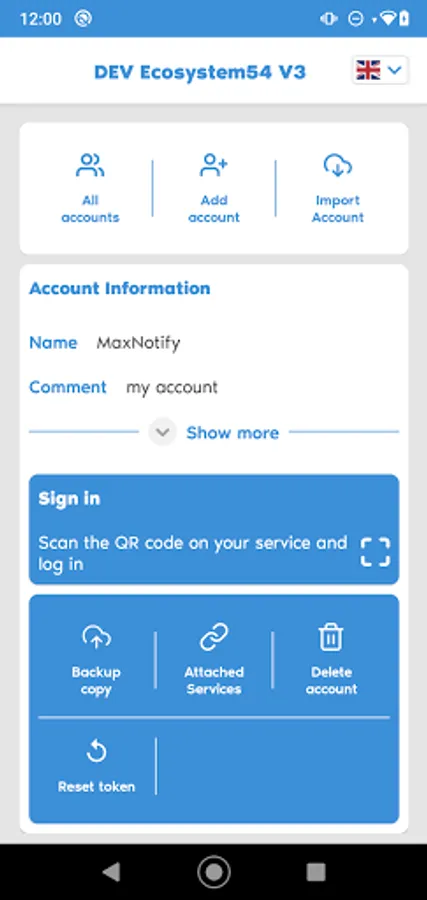 The app is used to provide secure account management in the ecosystem 54 workspace.
