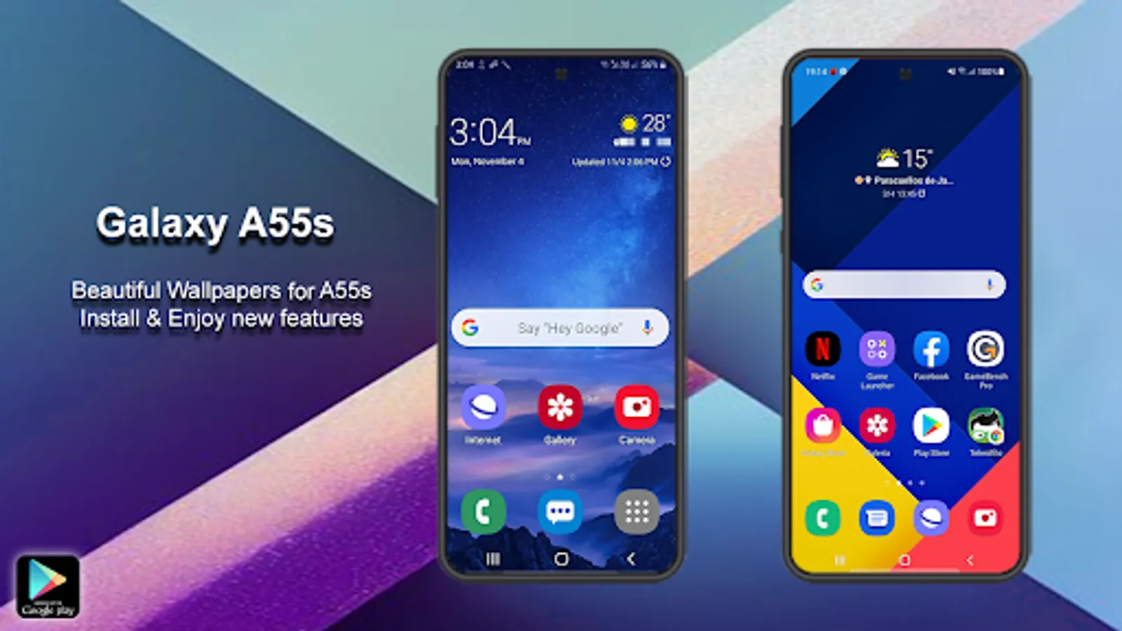 Samsung Galaxy A55s is wallpaper app. And this application also provide you lot's of launchers and themes. When you install this app you set latest wallpapers and launchers on your mobile.