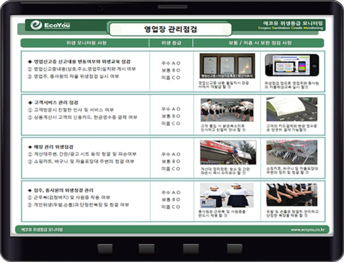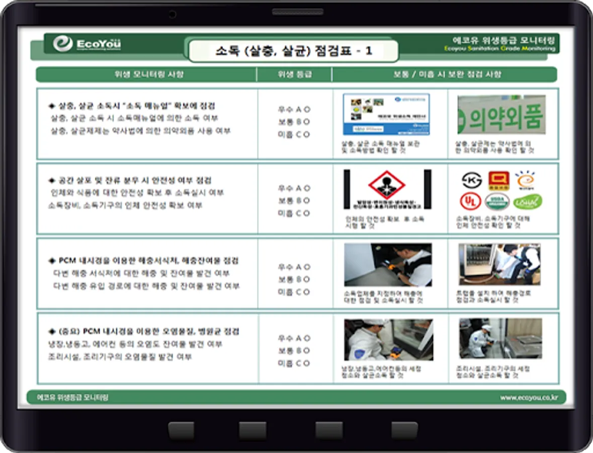 4) 점검 항목의 매뉴얼로 전국에서 동일하게 위생관리 가능