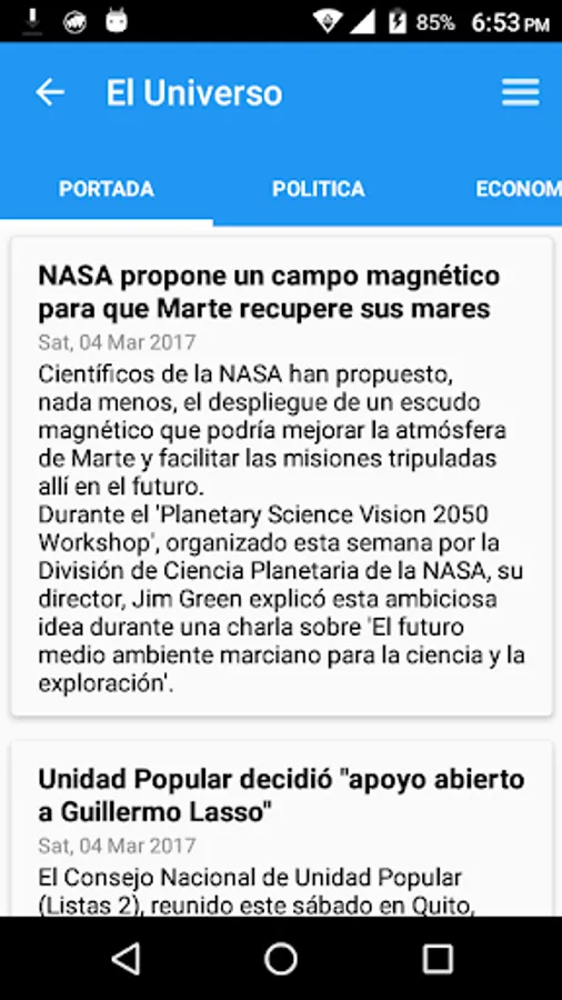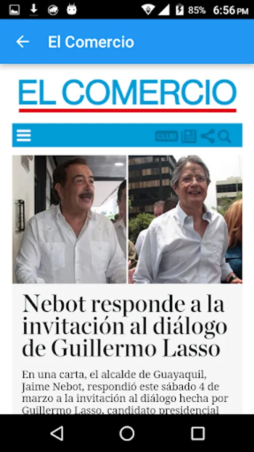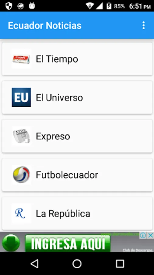 Stay up to date on the latest Ecuador news in Spanish. You will be able to quickly access all the news of the main newspapers of Ecuador from your device. Find out all the latest sports, music, football (soccer), magazines, farandula, magazines, shows and chronicles.