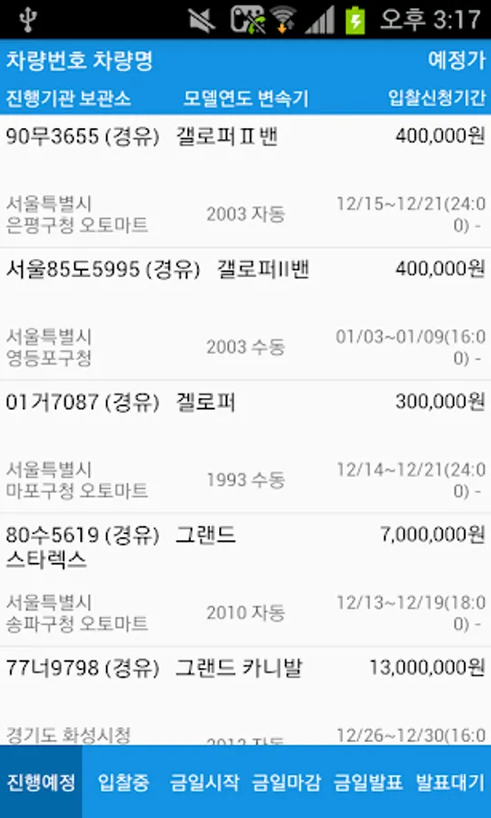 Car Internet Auction List, Auction Vehicle Check List