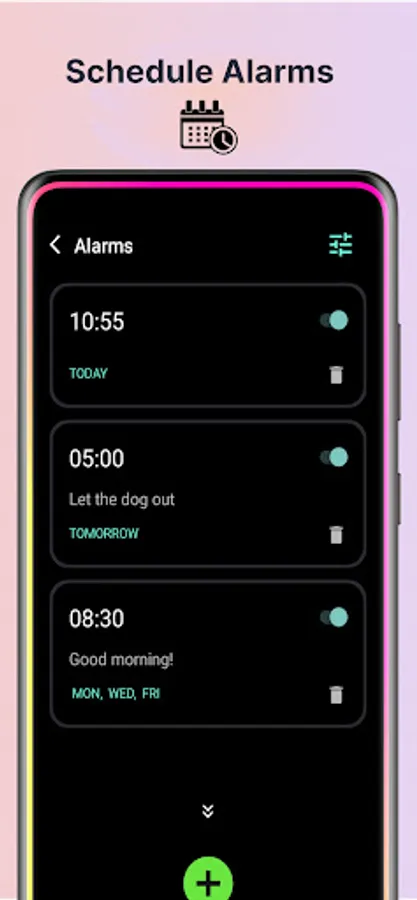 Alarms sounds of your favorite music wake your brain up and motivate for the day.
