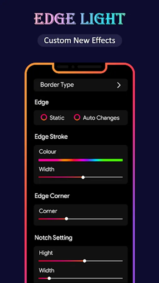You can use settings available in the application to customize the EDGE lighting as per your choice like changing the colors, adjust width, type of EDGE lighting border, display notch settings or more..