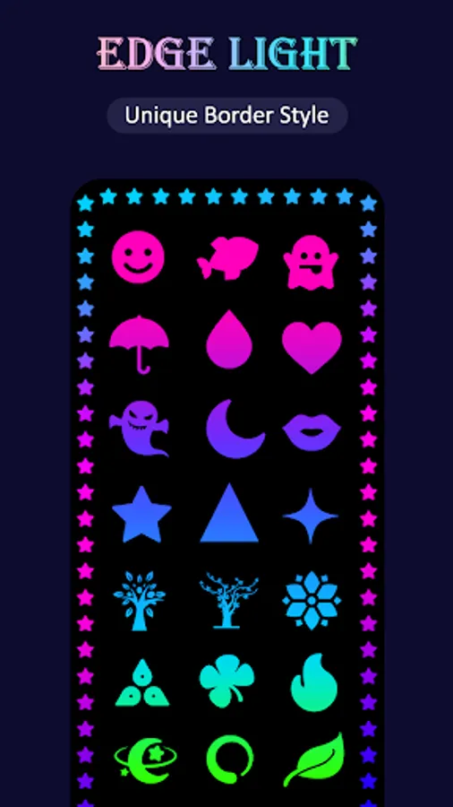Set edge lighting beautiful curved rounded corners light on your mobile home screen, lock screen, notification.