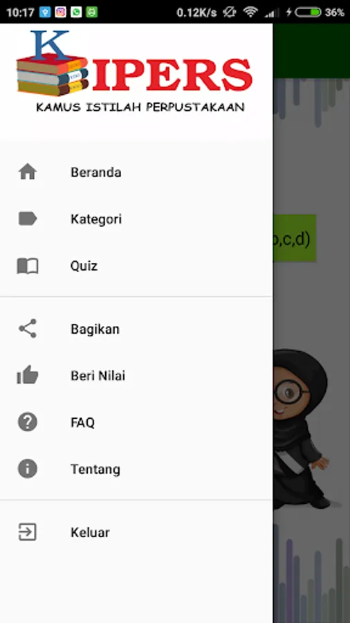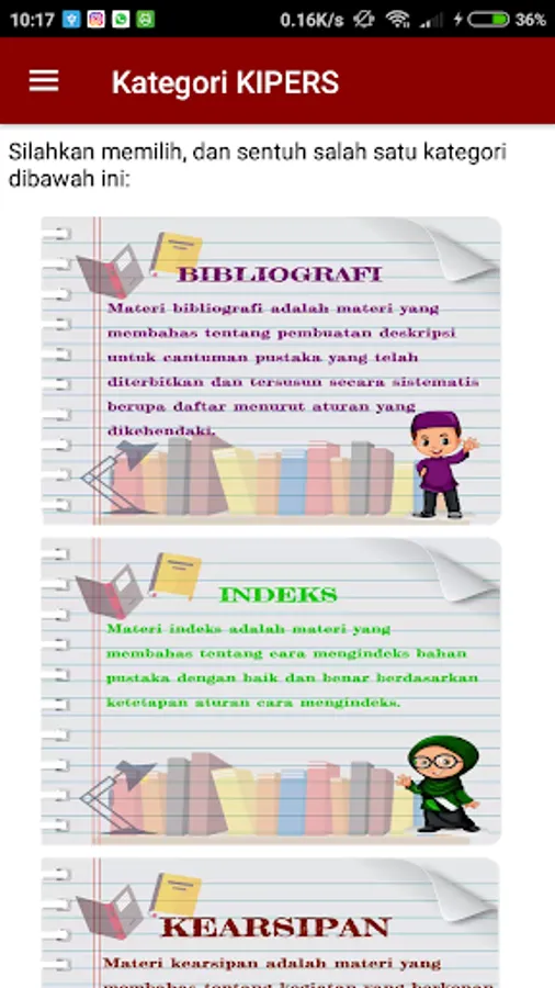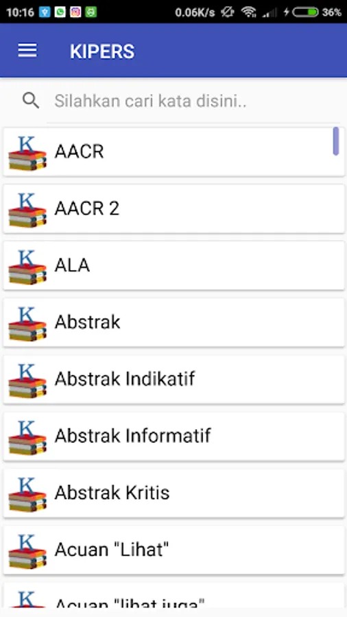 KIPERS (Dictionary of the term Library) is a mobile / electronic dictionary type application that is grasped with the Quiz feature to sharpen memory and understanding the terms in library science.