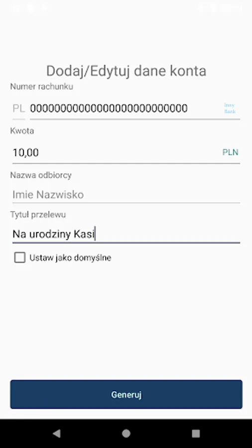 Now it is easy. You can generate the QR code with your transaction details (same as you can sometimes find on the invoice for telephone or Internet). Most of the Polish bank's apps will understand the code and will fill your name, 26 digit IBAN number, transfer title and amount automatically. So nobody will say: I do not have time to do the bank transfer now. 26 digits, it's to hard to input. I do not know your bank account number.
