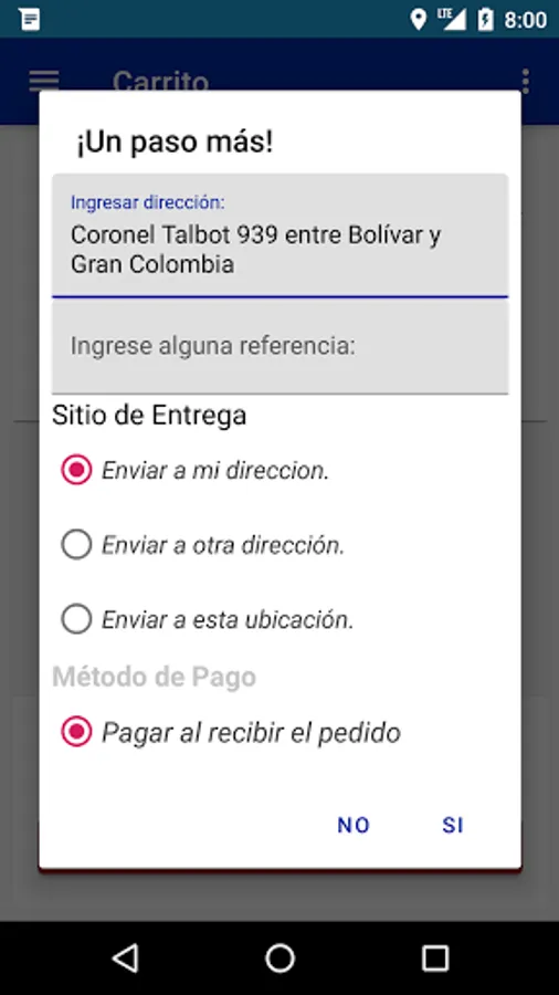 Esta aplicación es para la compra de comida con servicio de delivery