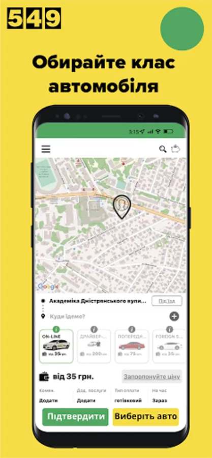 549 - a mobile application that allows you to book a trip in one click and easily pay for it with a bank card, cash or accumulated bonuses.