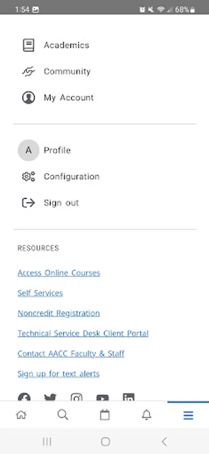 The easy-to-use app allows you to access your online classes, manage your account in Self Services and check your student email while you’re on the go! The experience of the AACC mobile app gives you the same look and feel of the web-based experience with the bonus of push notifications.