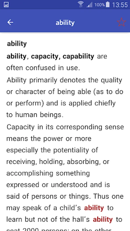 This app will help you distinguish a word from its synonyms and analogous words and how to choose a correct word. Each entry contains explanation, etymology and sample usage of a word and its synonym. Antonym and contrasted words are also included.