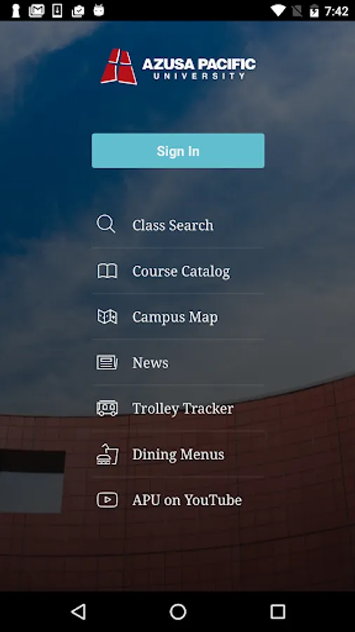 If you are not a current student or employee of APU you won’t be able to sign in, but you can still use the app to reference campus maps, trolley tracker, news, browse classes, access our youtube channel and connect with us.