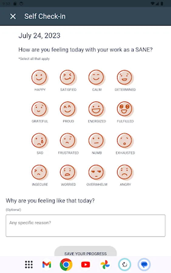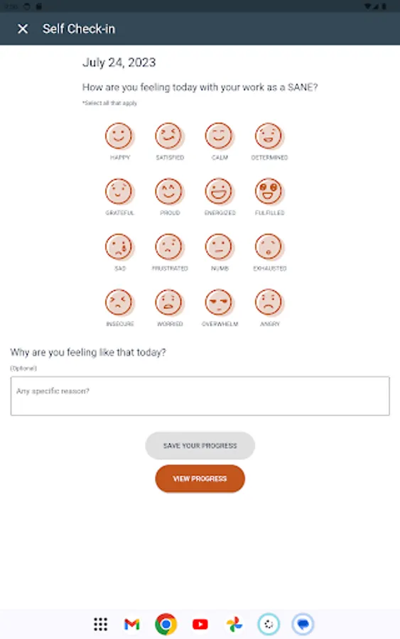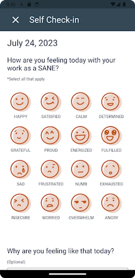 Users can express their emotions by selecting an emoji that represents how they're feeling, along with a brief record of why. This valuable tool helps users track their emotional well-being and reflect on their experiences over time.