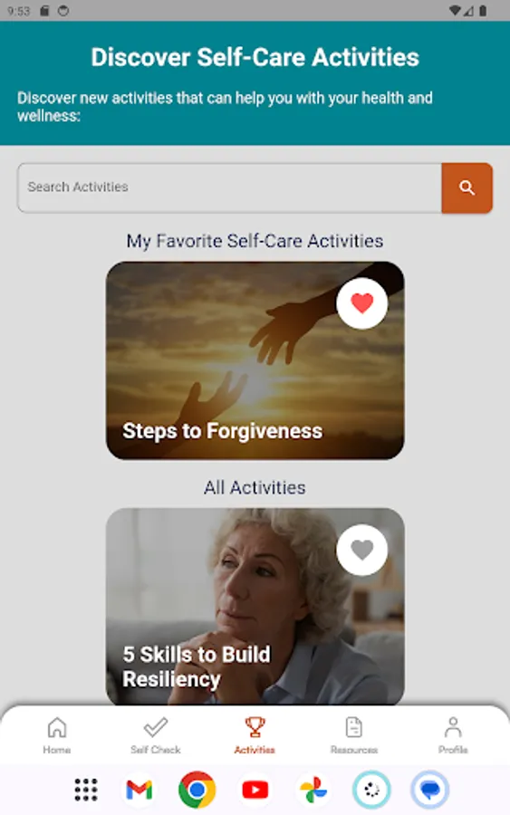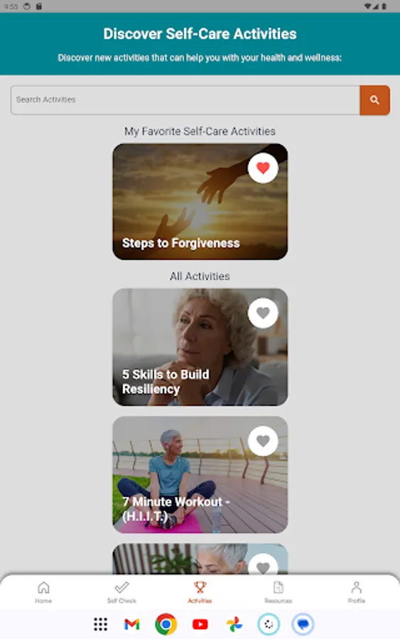 This section provides a variety of activities carefully curated to promote mental and physical well-being. From carving out personal time to engaging in hobbies and focusing on physical and mental self-care, users can embark on a transformative self-care journey.