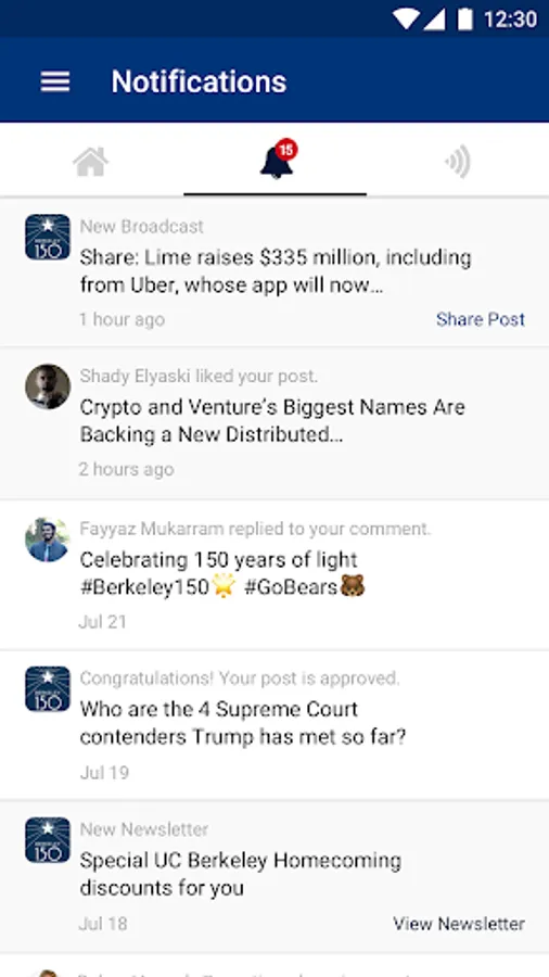 The Cal Ambassador Network is a platform for Berkeley alumni and parents to share, curate, and create social content related to the University of California, Berkeley. Alums and parents are invited to participate in this brand ambassador program. Ambassadors earn points for sharing content and for their followers' reactions to the content. Prizes are awarded each month.