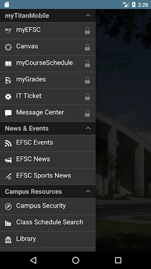 Titan Mobile will allow you to view Eastern Florida State College's latest news and events. Students will also be able to view their schedule and grades from their mobile device. Instructor contact information is easily accessible via Titan Mobile, as are campus maps and EFSC's Facebook page.