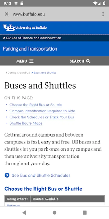 • TRANSPORTATION: Use the Transportation Tracker to find out where the nearest shuttle or bus is; see traffic and parking alerts; look up bus and shuttle schedules and route maps.