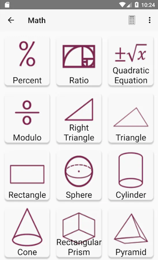 A collection of easy to use calculators designed, written, and maintained by students at Brigham Young University - Idaho. Uses very little device storage and is lightning fast. Includes calculators for shopping, cooking, travel, sports, finance, geometry, math, statistics, science, and computing.