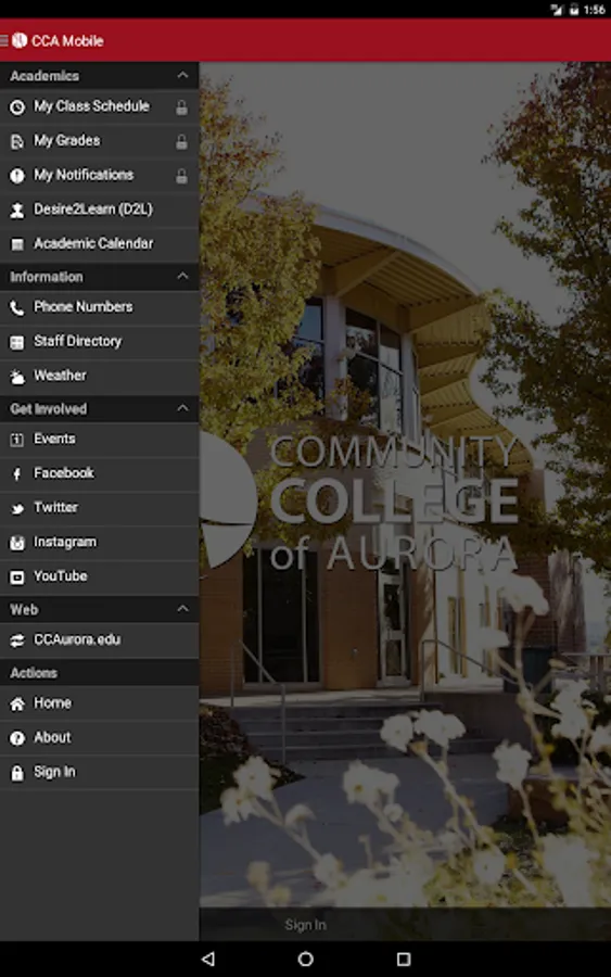 The CCA app makes it easy to stay connected to Community College of Aurora. Log in with your MyCCA credentials to gain quick access to your class schedule, grades, and more.