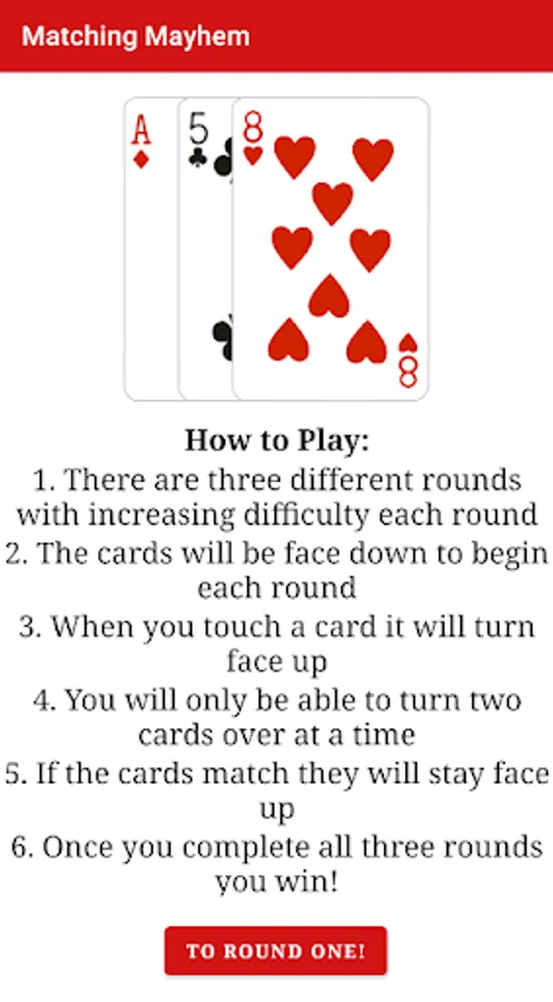 Do you think you have a sharp enough memory to complete all three rounds of this matching game? Start playing to find out! You will have three rounds that increase in difficulty for every subsequent round. Beat all three rounds and you win!