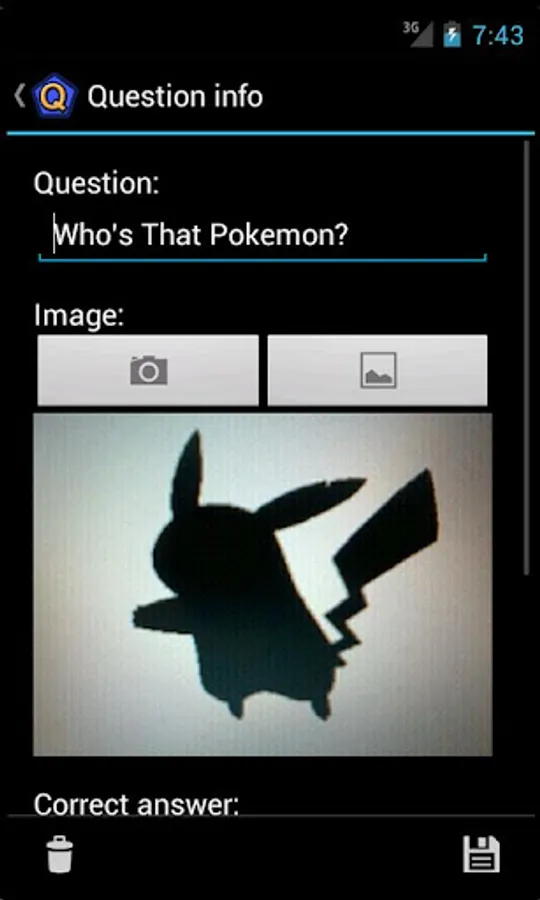 * Create quizzes using images from your camera or image gallery! You can quickly create a quiz to test yourself or someone else on peoples names, the planets of our solar system, words or whatever you feel like.