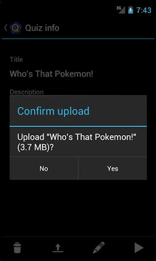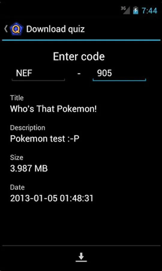 * Share your quizzes easily! With the press of a button you are able to upload your quizzes and get a short code back, others can download your quiz using the code.