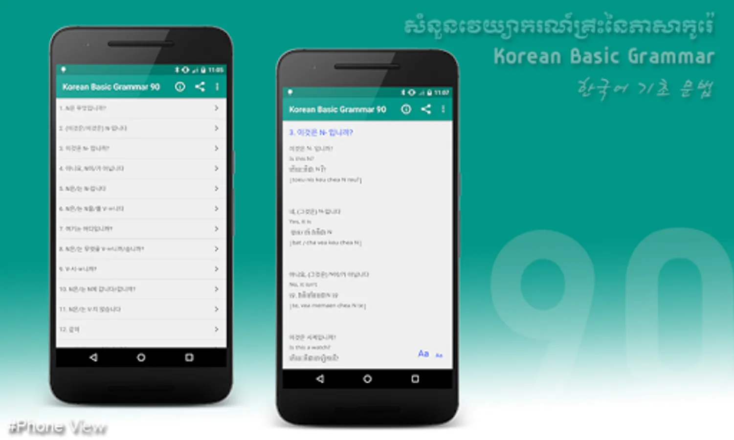It is highly recommended for those who want to learn Khmer as well because it also provides a pronunciation for Khmer through English and Korean phonetic.