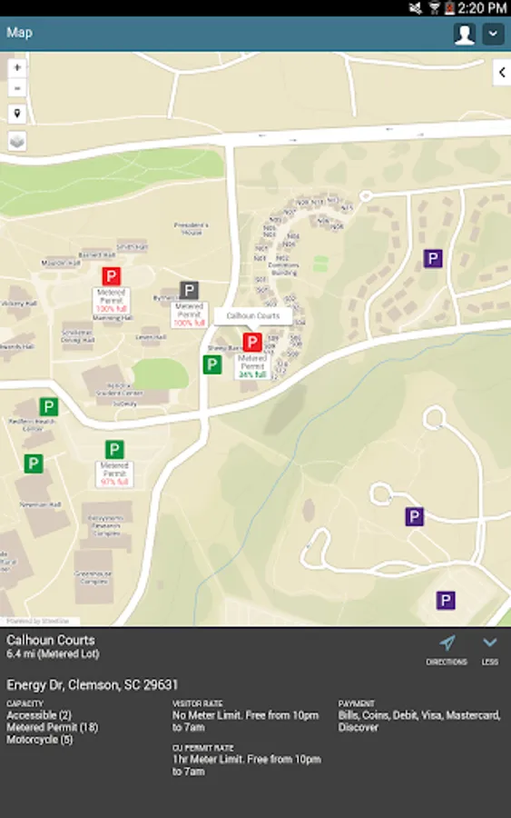 - View real-time availability of metered permit and commuter spaces.