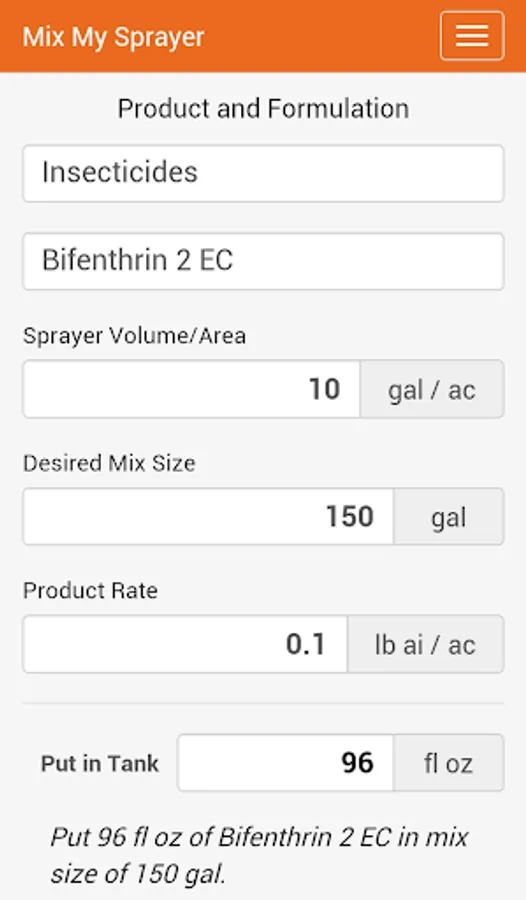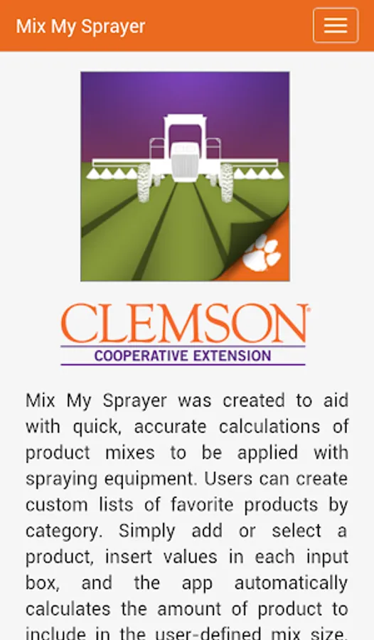 Mix My Sprayer was created to aid with quick, accurate calculations of product mixes to be applied with spraying equipment. Users can create custom lists of favorite products by category. Simply add or select a product, insert values in each input box, and the app automatically calculates the amount of product to include in the user-defined mix size. Units for each input can be customized by tapping the unit buttons. Products are saved with the user settings last used.