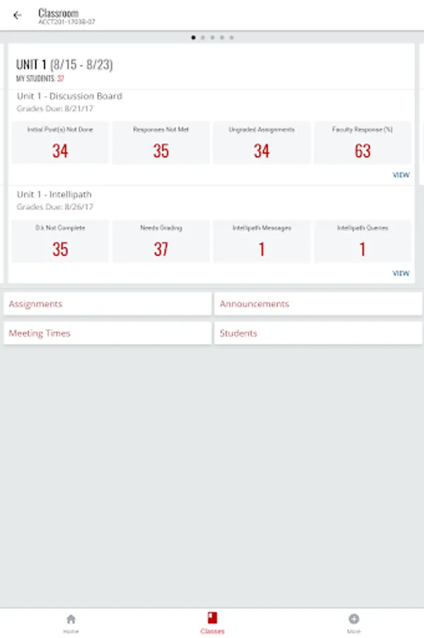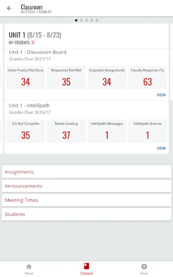 - Dashboard views of assignments, including number of submissions, missing assignments, and if there is work which needs grading in an intellipath™ assignment.