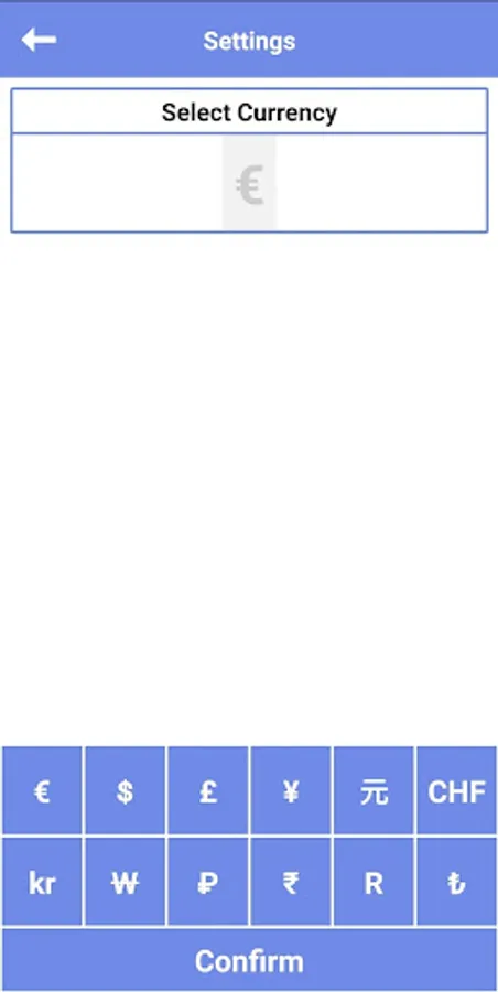 Set your preferred currency via the settings tab.