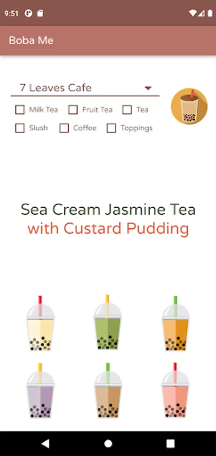 Do you have a boba craving but don't know what drink to get? Boba Me lets you choose from your favorite boba shops and will generate a random drink from their menu. Got preferences? Want only milk tea or fruit tea and no toppings? Check the boxes with your preferences, and Boba Me can generate a random drink just for you!
