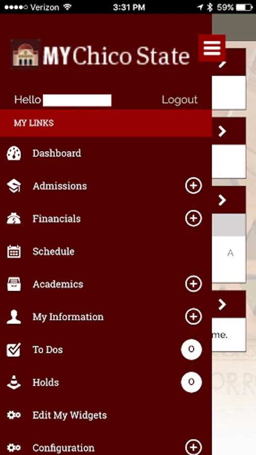MyChicoState mobile app gives Chico State students, faculty, staff on-the-go access to the University's Student Information System, as well as many useful public tabs, such as maps, news, class search.
