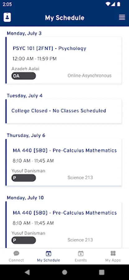- View your course schedule