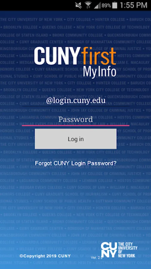 Starting with Version 2.0, log in to MyInfo using your CUNY Login credentials.