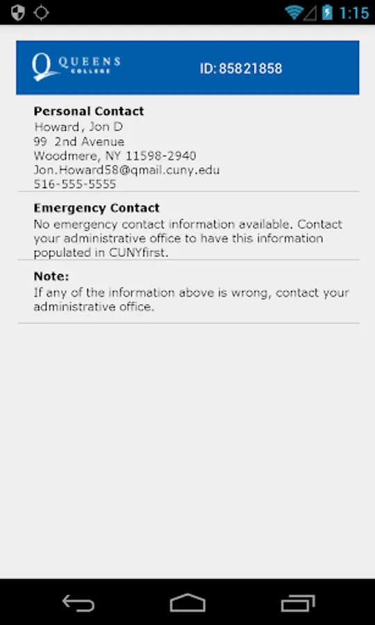 CUNYfirst MyInfo Mobile is a lookup tool primarily for students to quickly find key information for the new semester. Use it to find your latest class schedule, class textbooks, financial aid, academic calendar, campus map, and your biographical profile.